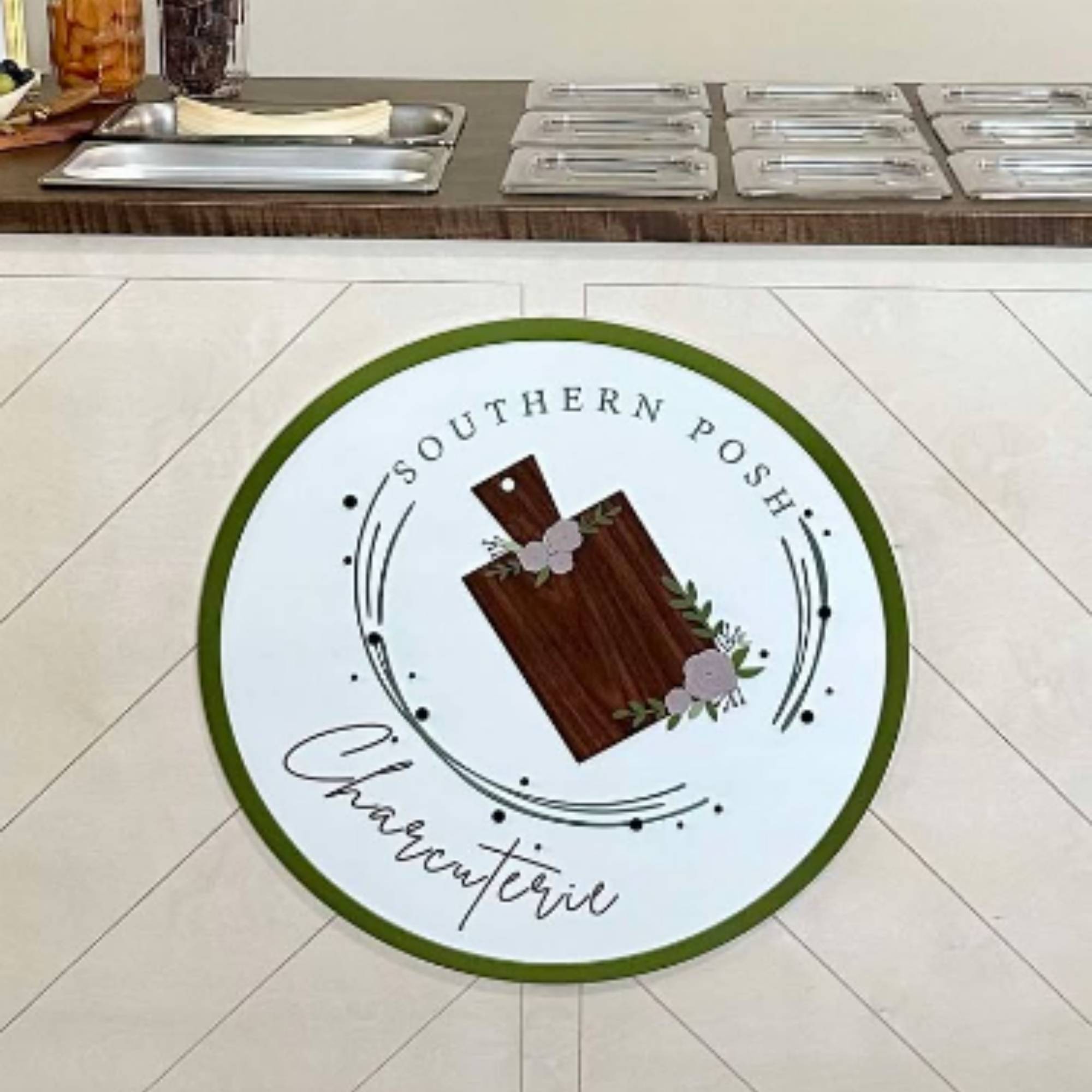 Custom charcuterie cart signs crafted from layered wood or acrylic and designed with your logo, colors, and style—putting your brand front and center with a polished, professional look.