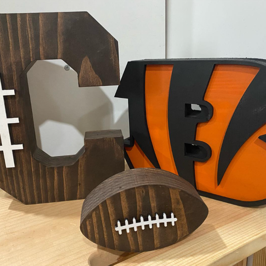 Custom pieces for a nephew that loves sports to place on the shelves in his room.