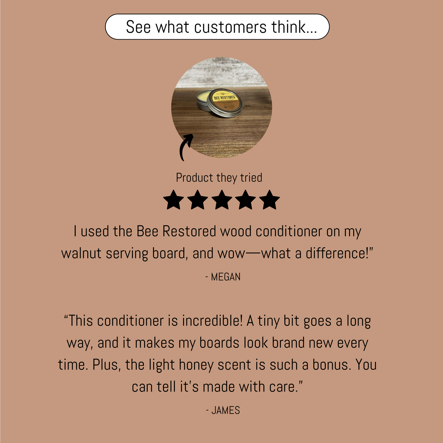 Bee Restored penetrates beneath the surface to deeply nourish dry, thirsty wood. By rehydrating the fibers from within, it restores flexibility and resilience—helping to prevent cracking, splitting, and warping over time. The result? Stronger, smoother, longer-lasting boards that are as functional as they are beautiful."