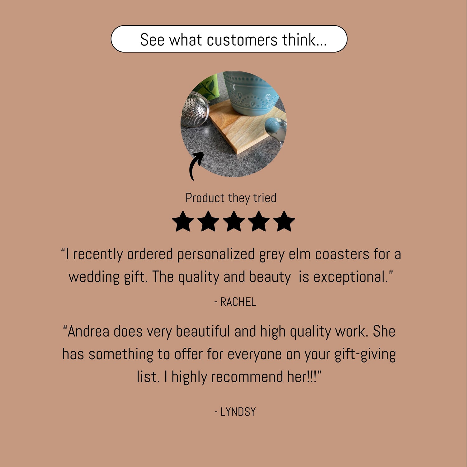 No, you can’t find this anywhere else. Each coaster is handcrafted with care, using kiln-dried wood and personalized to create something truly one-of-a-kind. We combine quality craftsmanship and unique designs, ensuring you get a product that's as special as it is durable.