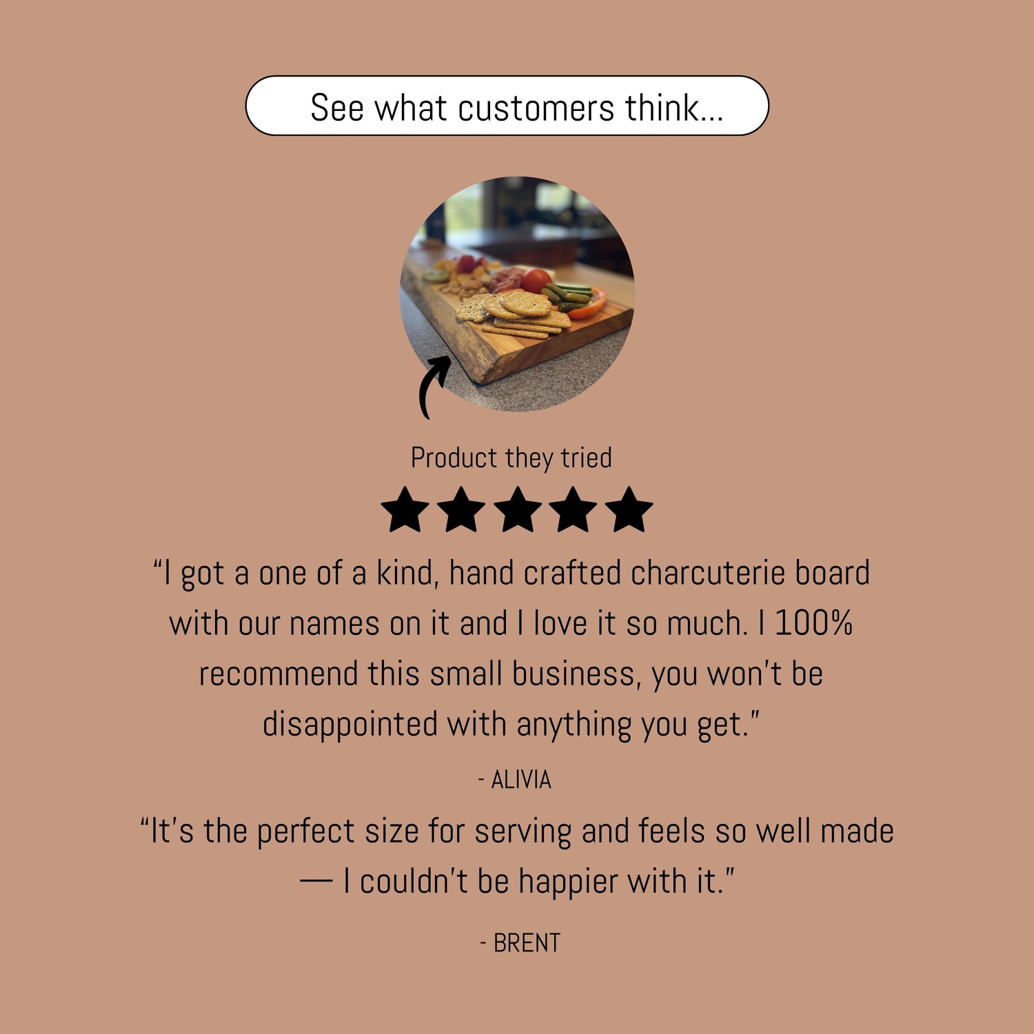 No, you can’t find this anywhere else. Each board is handcrafted with care, using kiln-dried wood and personalized to create something truly one-of-a-kind. We combine quality craftsmanship and unique designs, ensuring you get a product that's as special as it is durable.