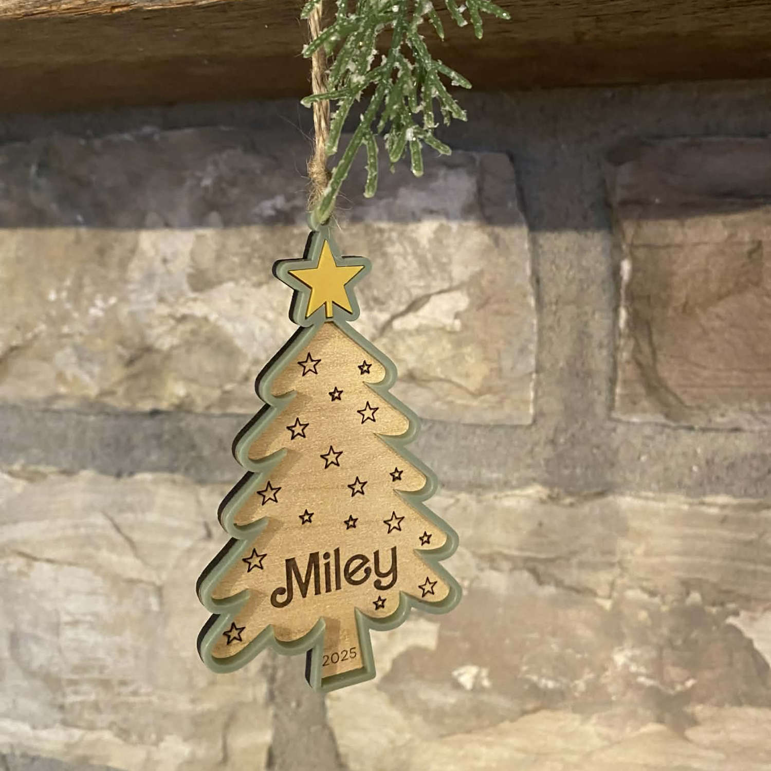 Crafted one layer at a time, this ornament blends warm hardwood and soft acrylic to showcase your chosen name in a beautiful, timeless design that feels special every season.