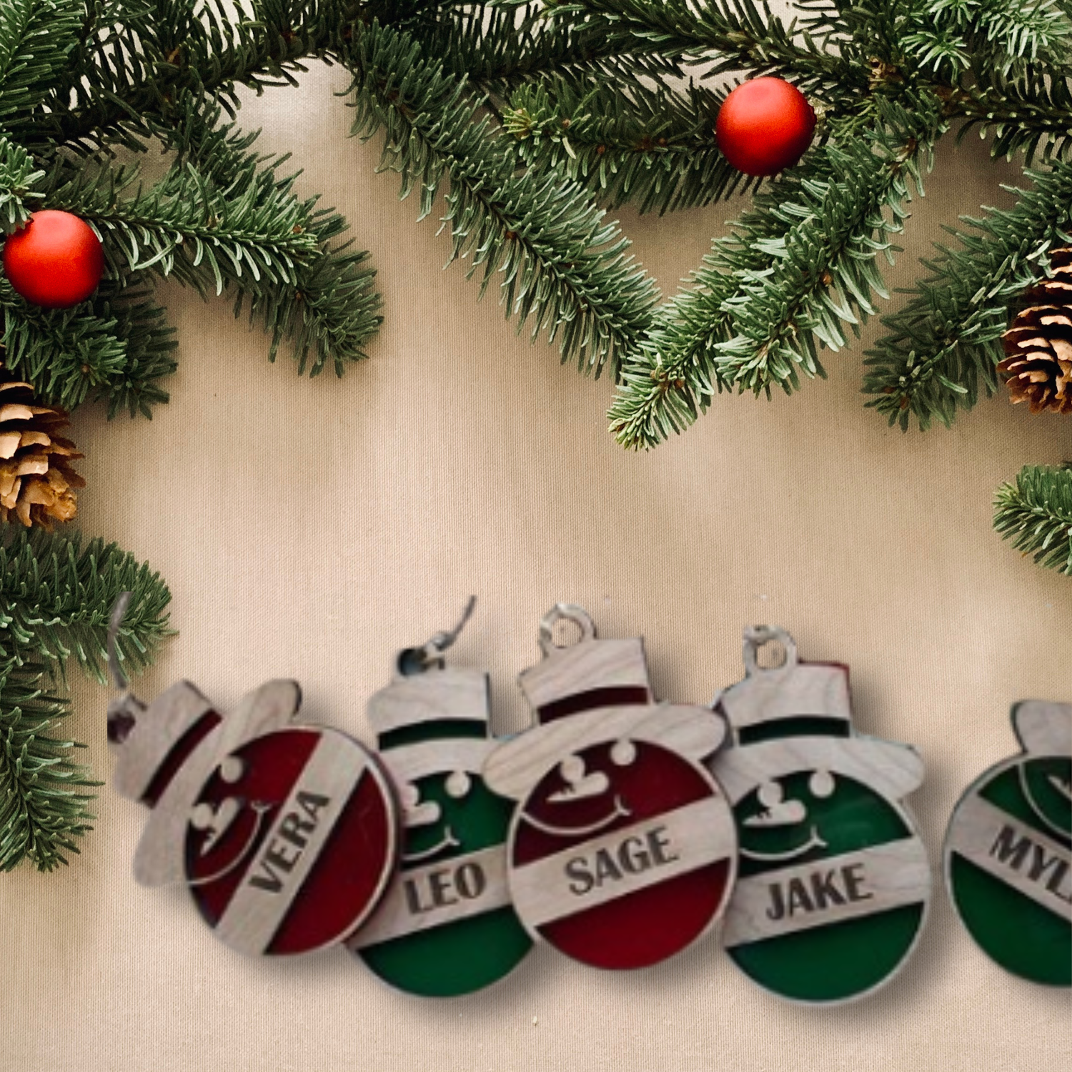 With your choice of red, green, or white acrylic, this handcrafted ornament brings cheerful color, depth, and personalization to your holiday décor.